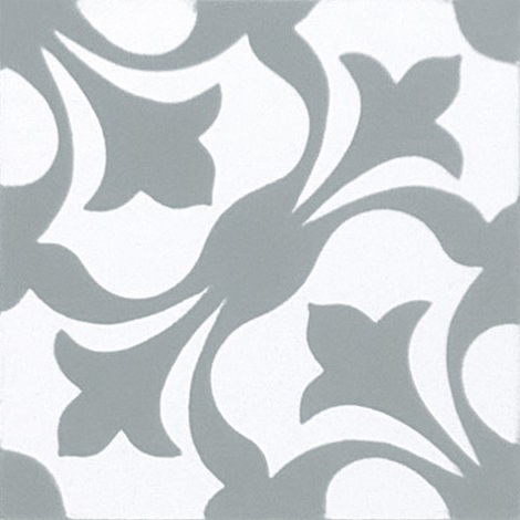 Die klassische Farbkombination bri unseren Zementfliesen mit der Ref. 218 von Schwarz und Weiß, eingesetzt bei einem floralen Motiv passt zu diversen Stillrichtungen.
